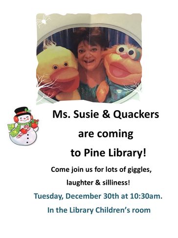 Ms. Susie and Quakers are coming for a visit! Bring your toddlers and preschoolers for this special event.