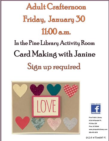 Come join us for an Adult Crafternoon! Spots fill up fast, so sign up today in the Library!